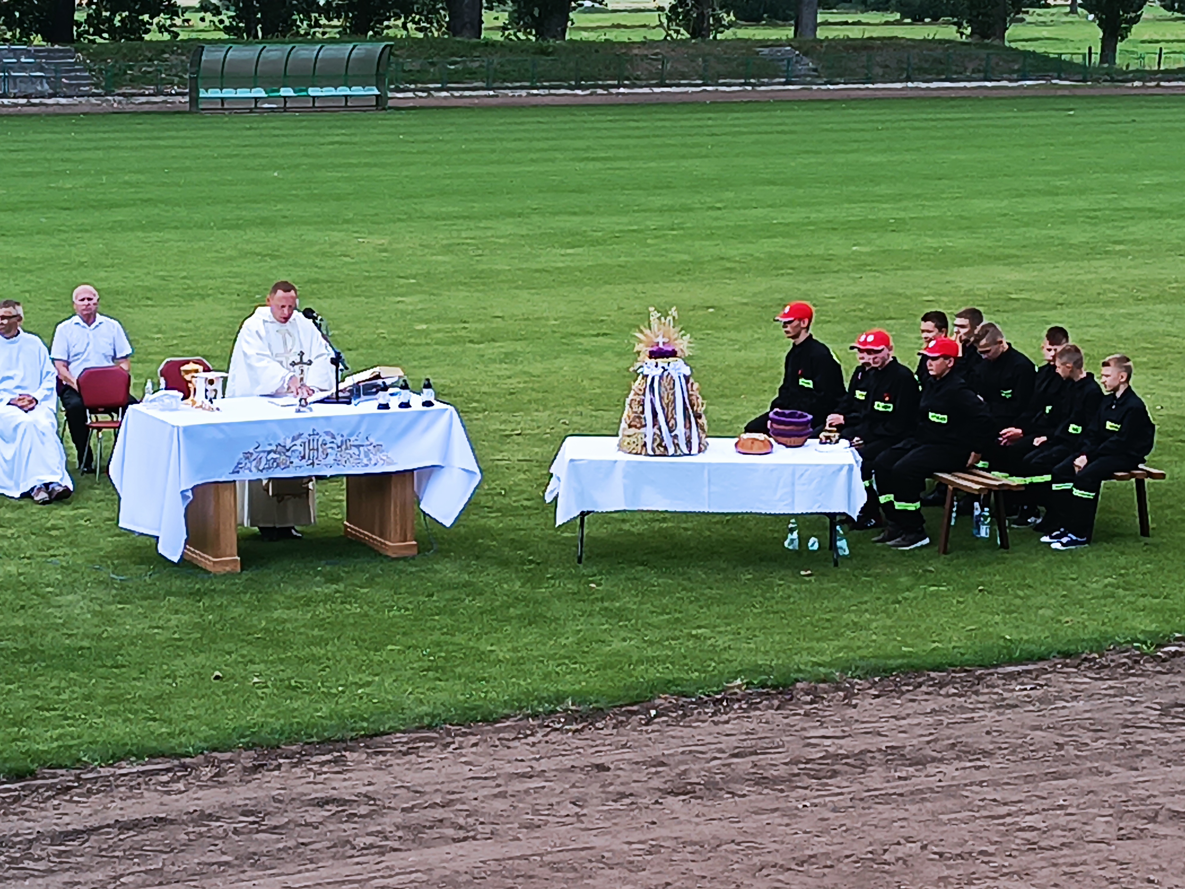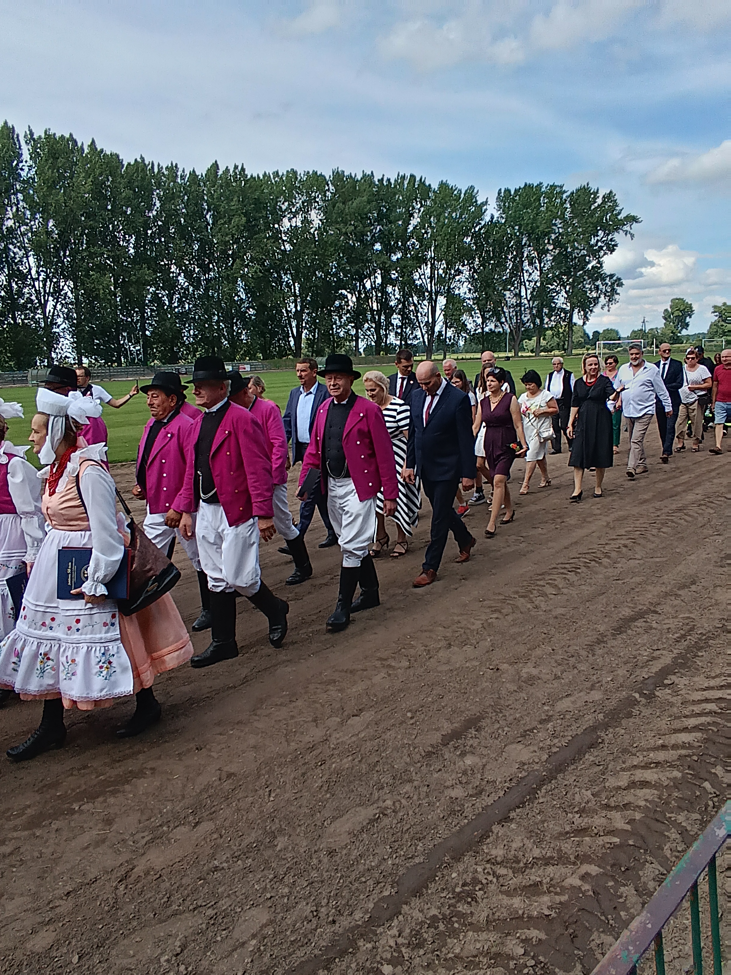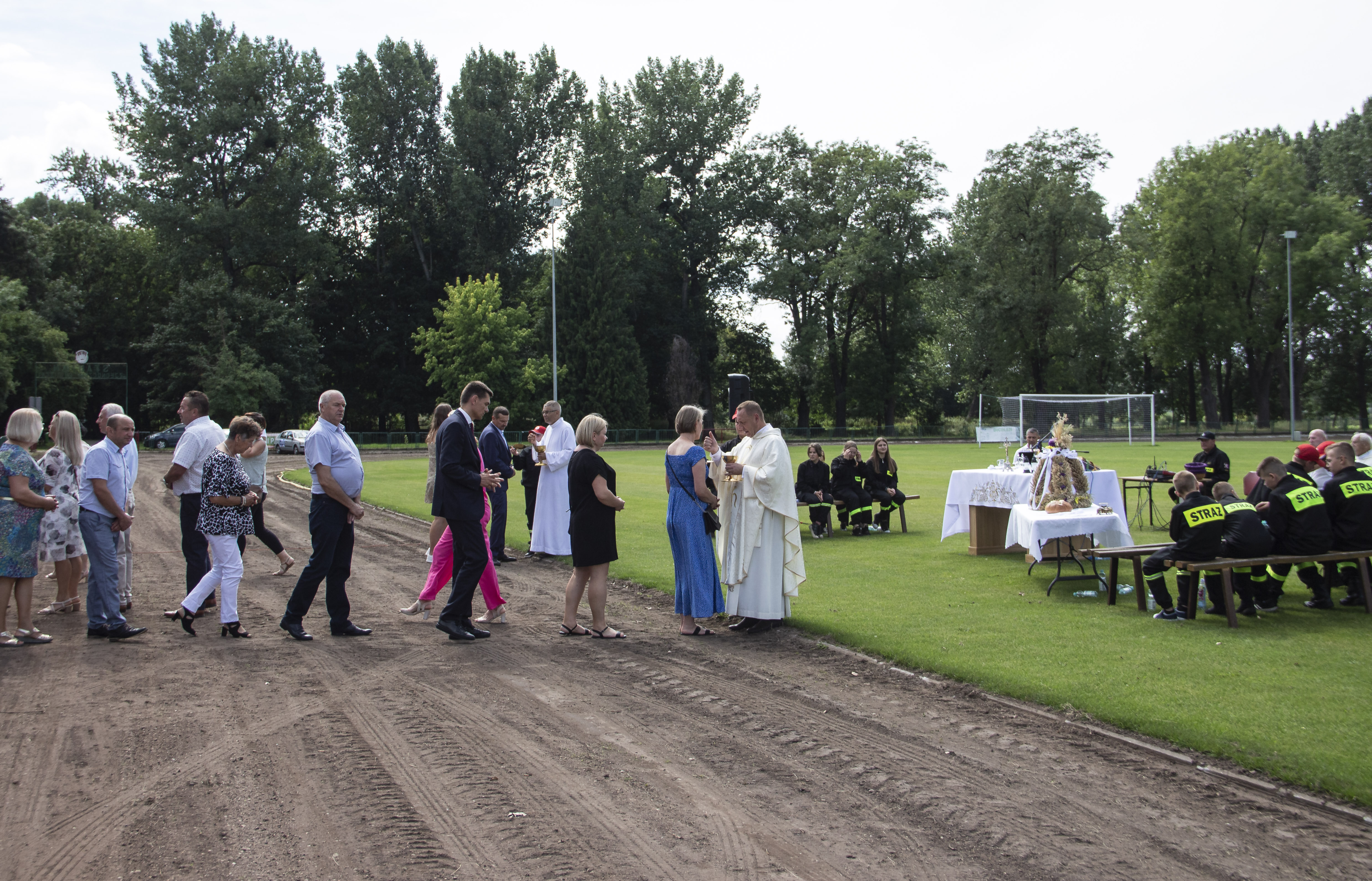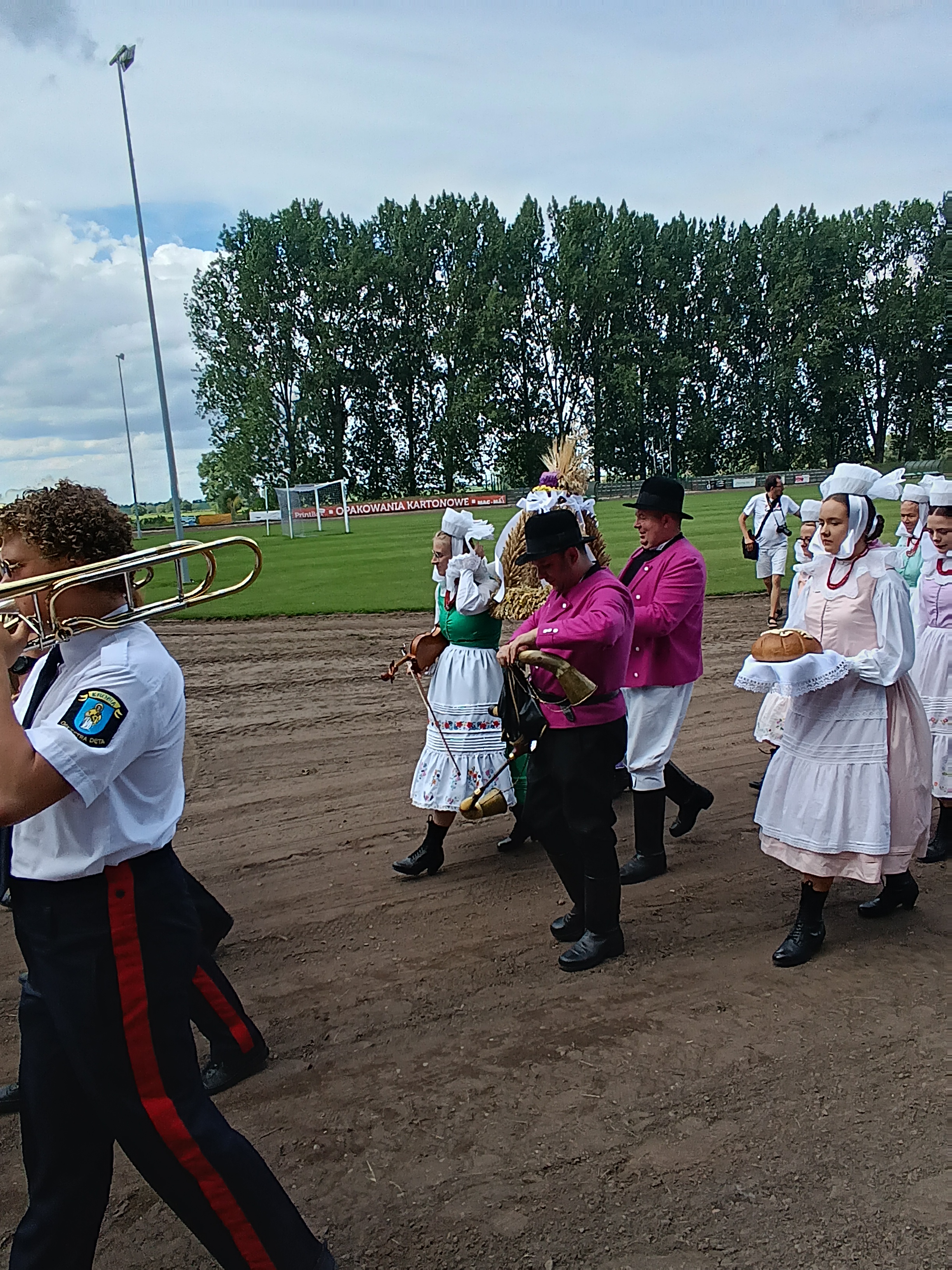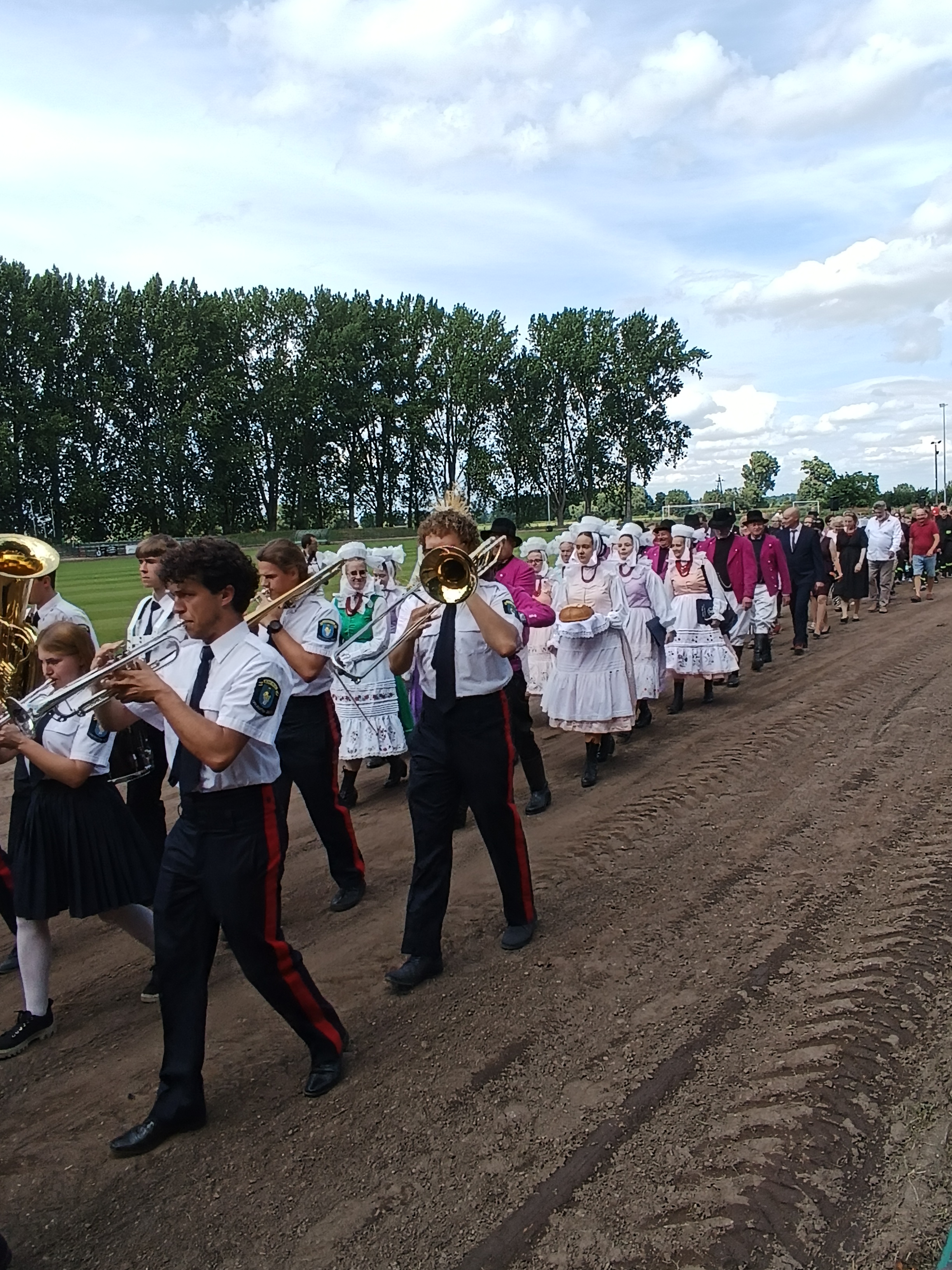 Ze stadionu korowód dożynkowy udał się pod Dom Strażaka, gdzie w obecności zaproszonych gości nastąpił Tradycyjny Obrzęd Dożynkowy w wykonaniu Biskupiańskiego Zespołu Folklorystycznego z Domachowa i Okolic.