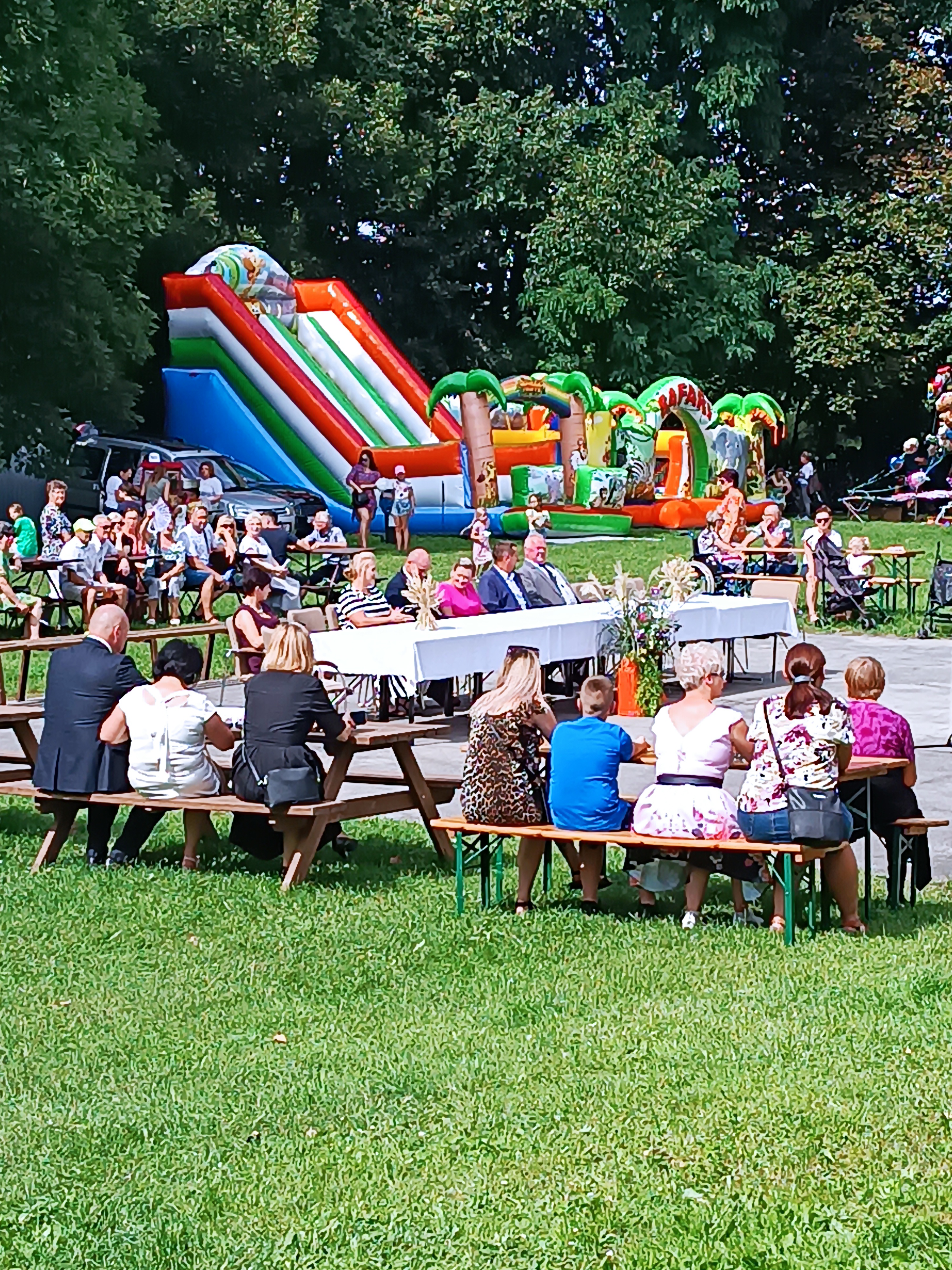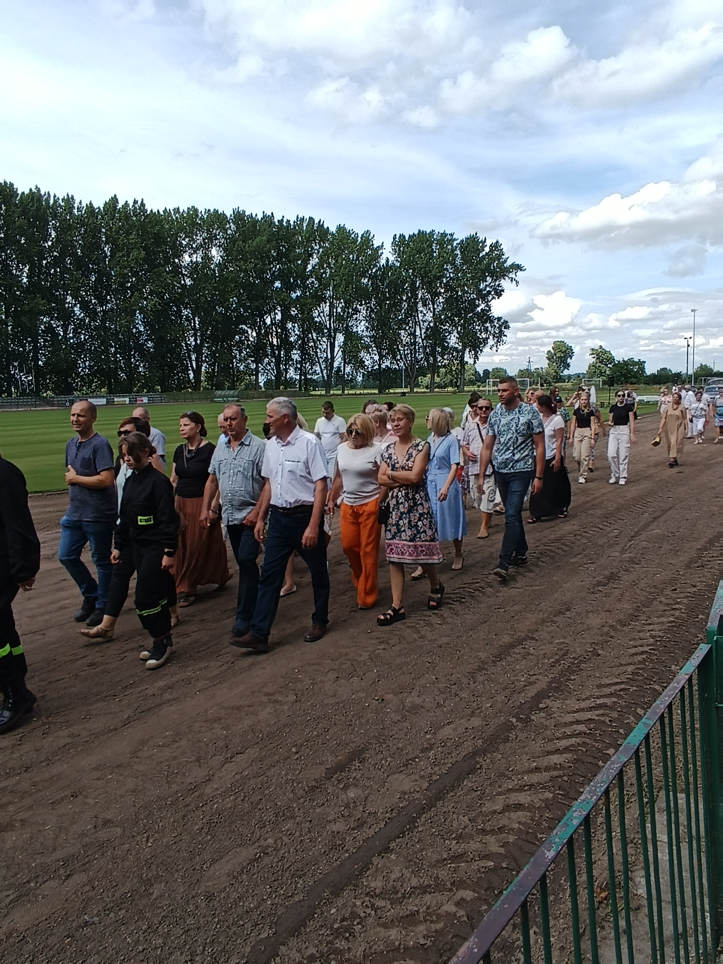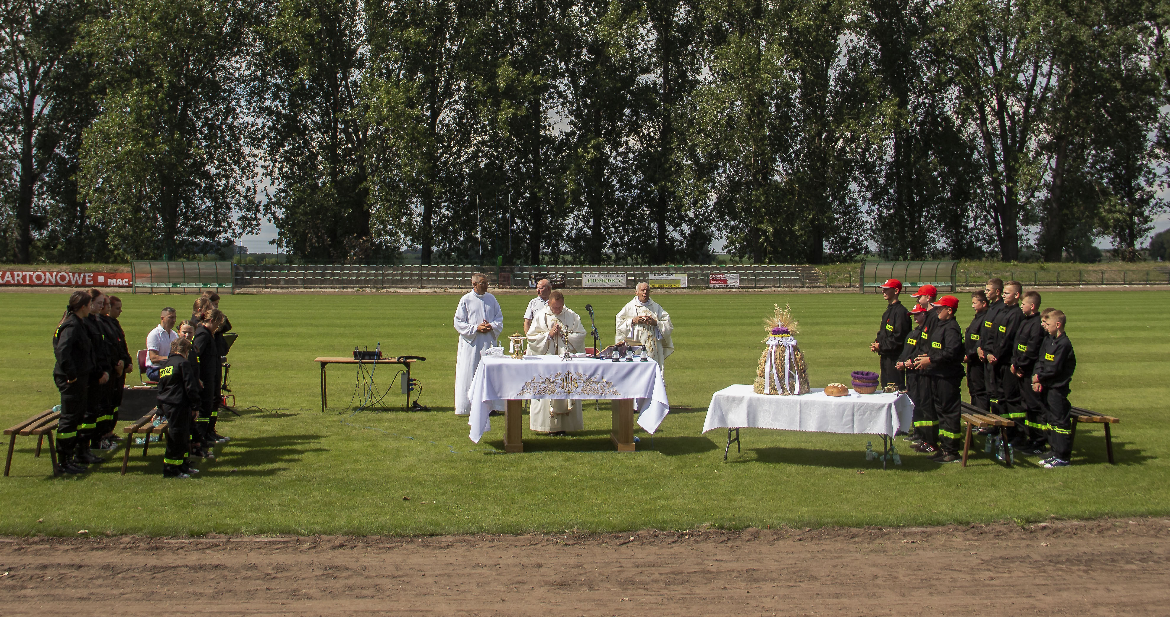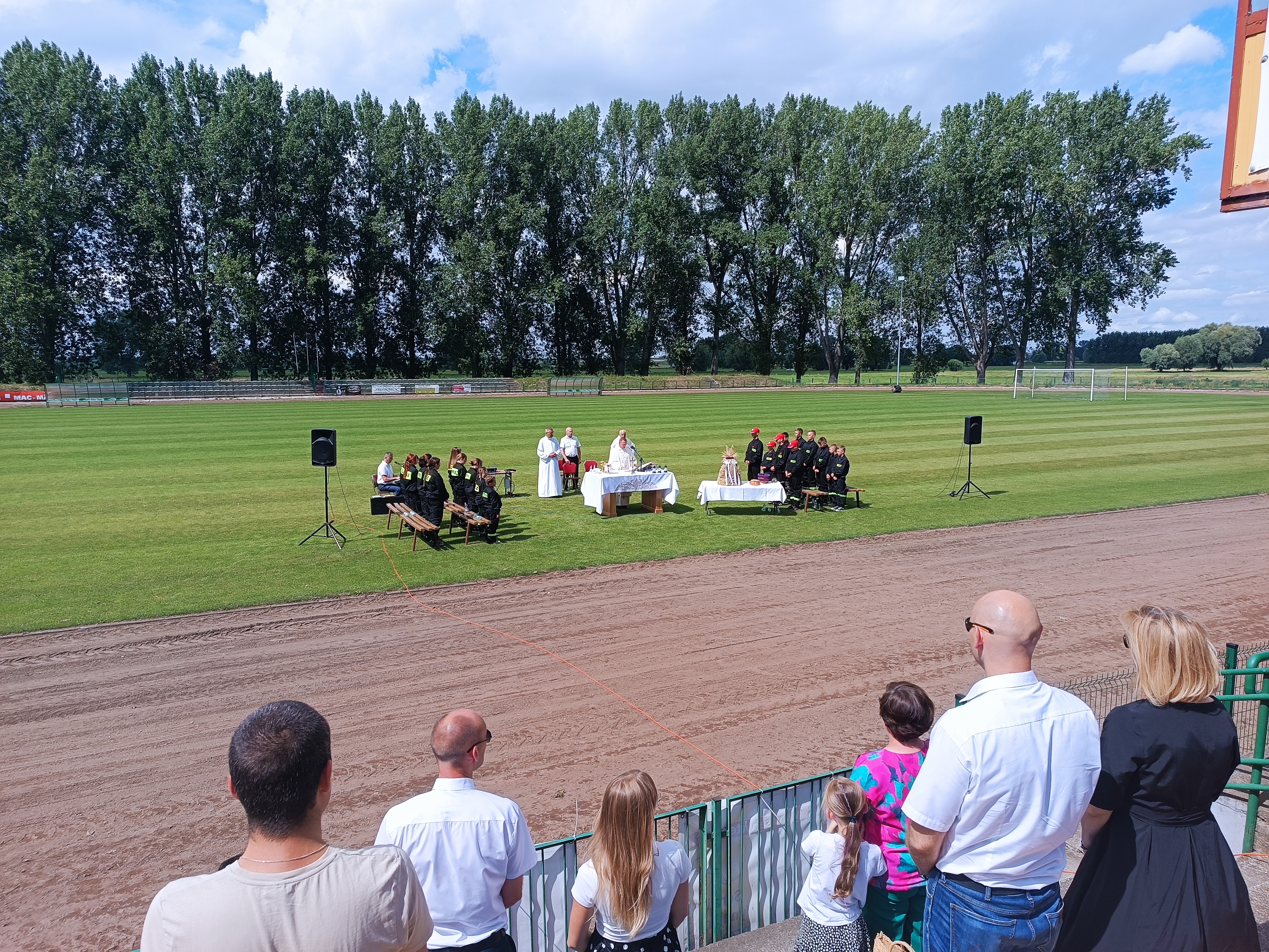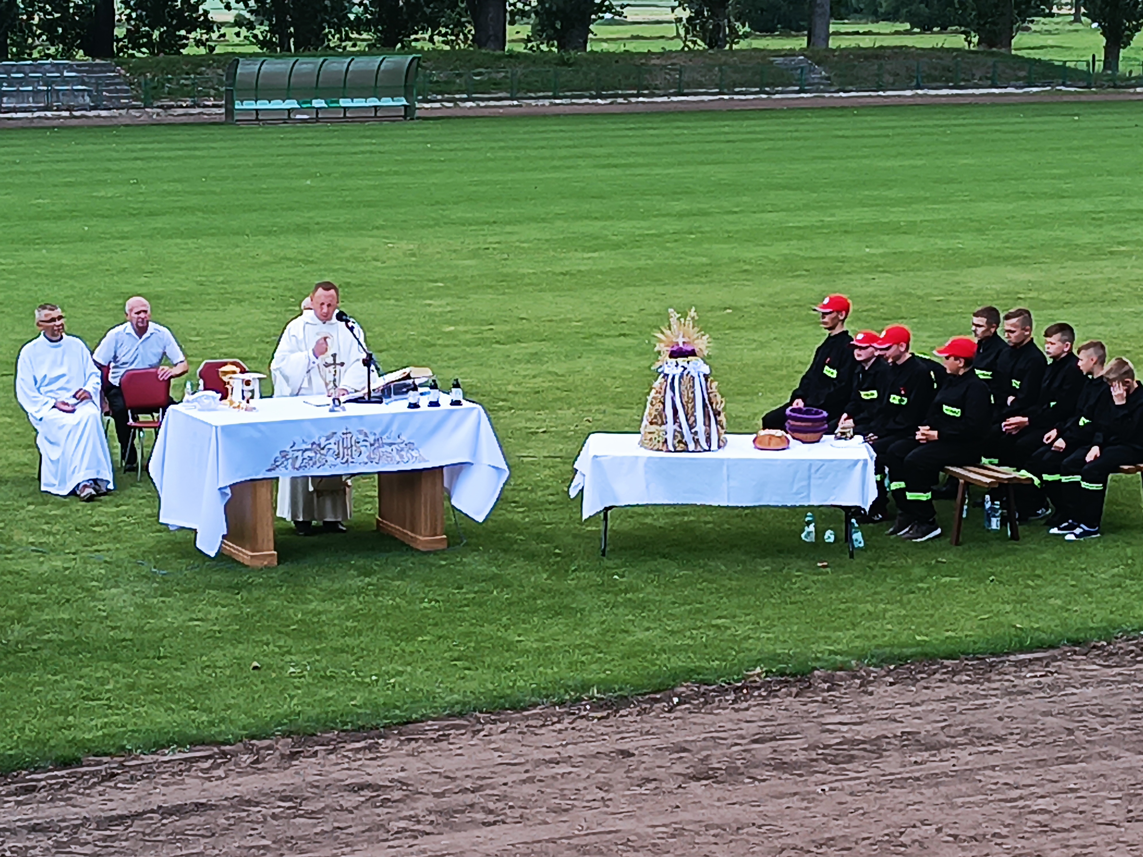 Ze stadionu korowód dożynkowy udał się pod Dom Strażaka, gdzie w obecności zaproszonych gości nastąpił Tradycyjny Obrzęd Dożynkowy w wykonaniu Biskupiańskiego Zespołu Folklorystycznego z Domachowa i Okolic.