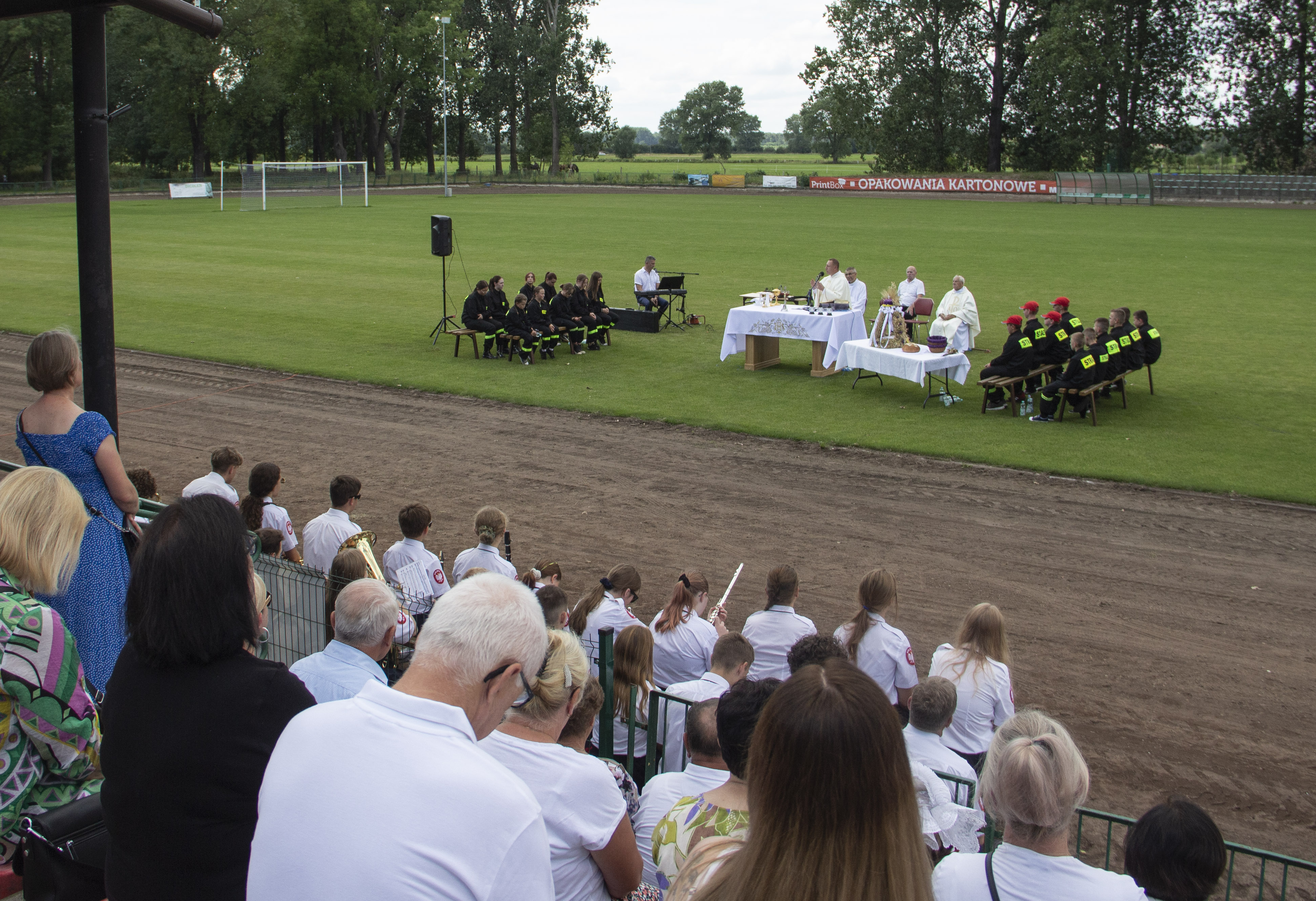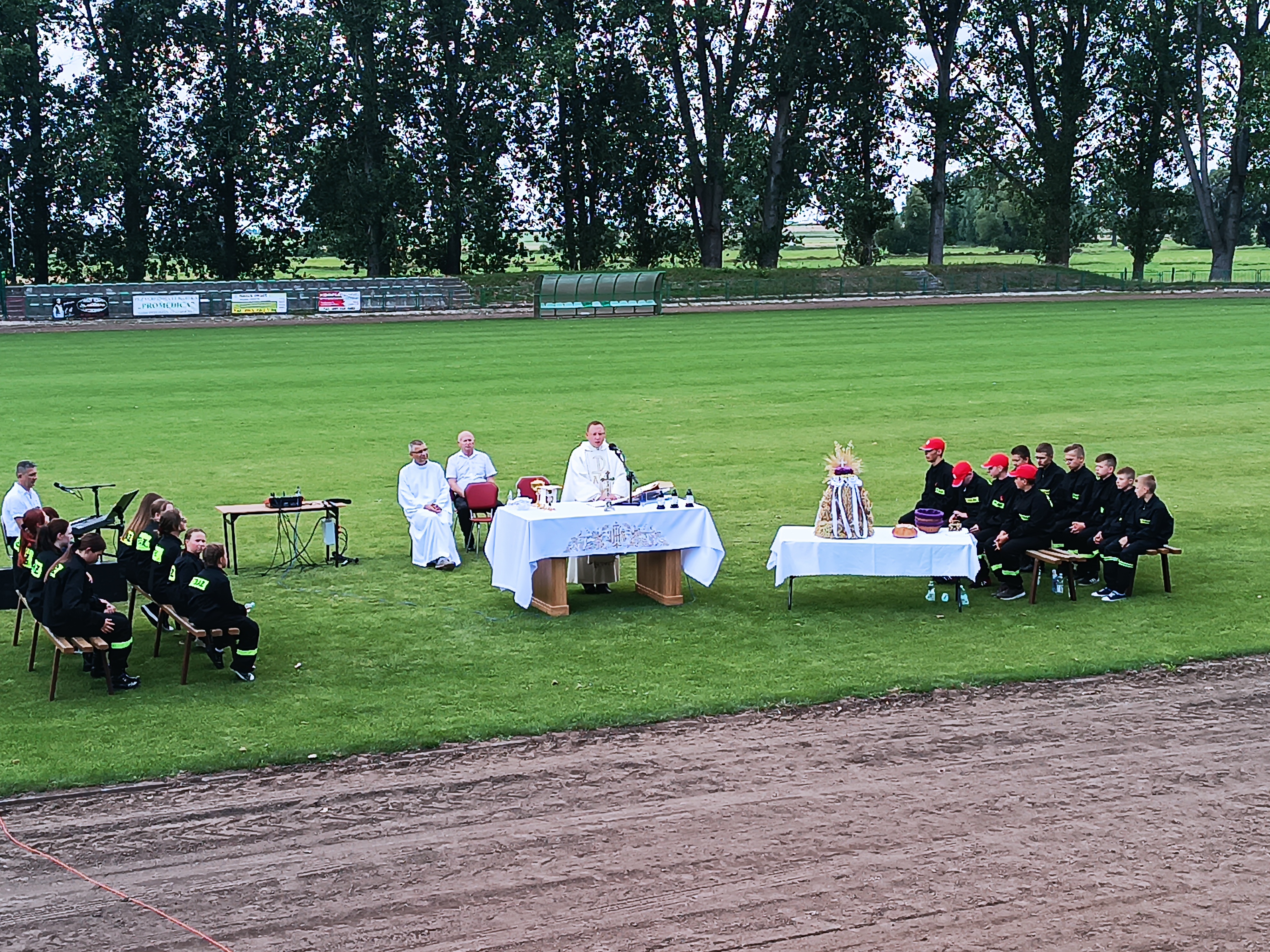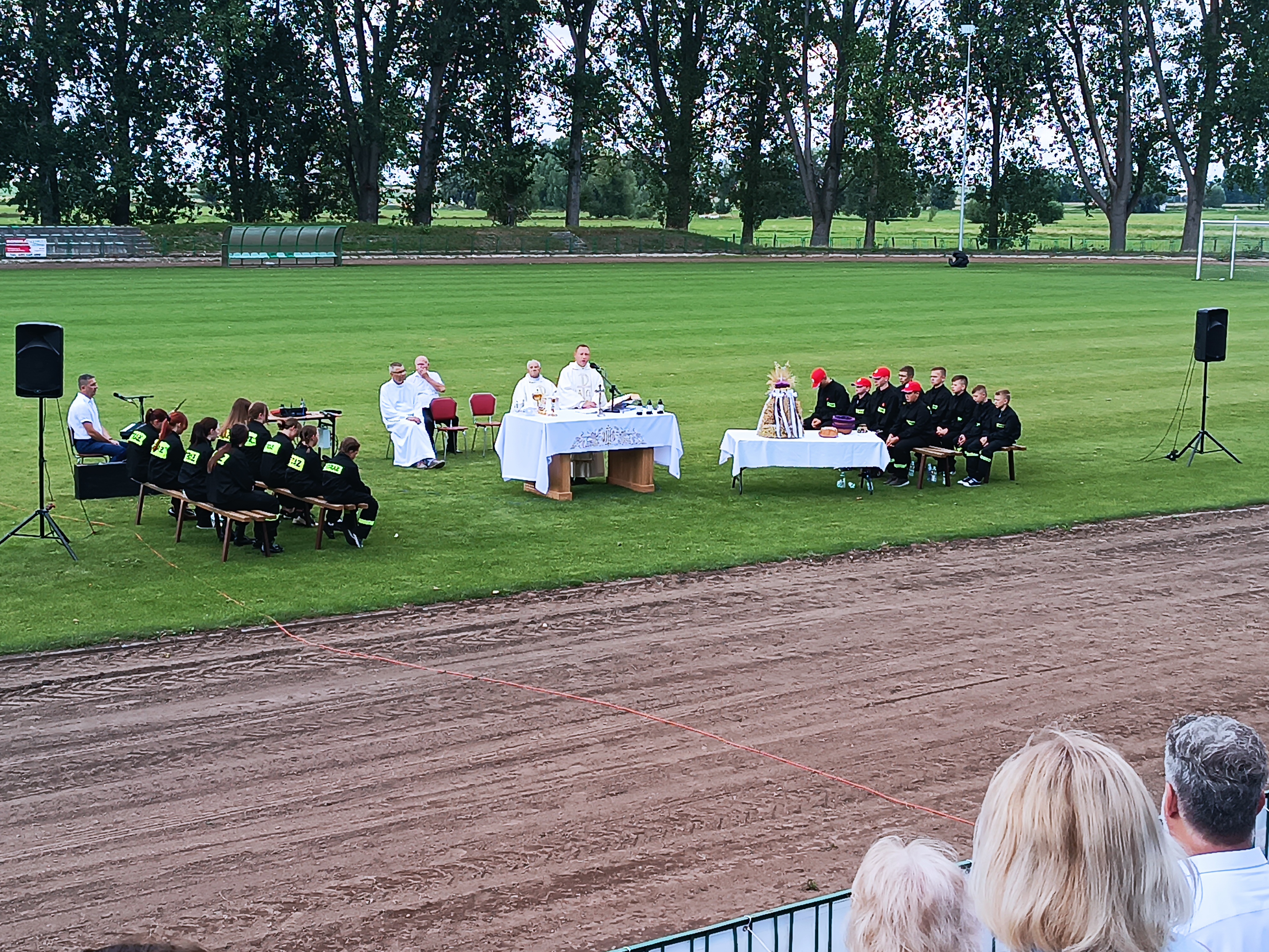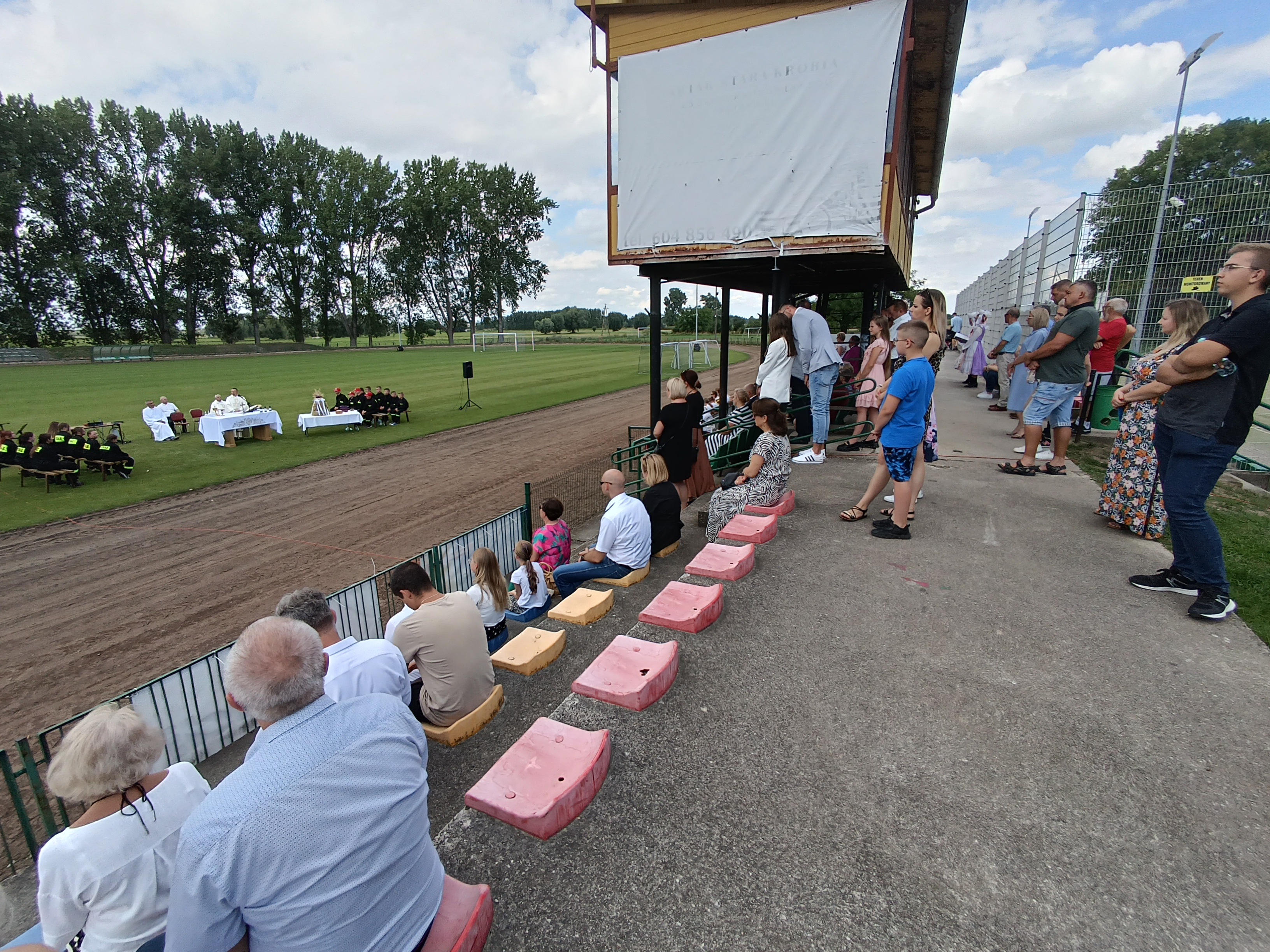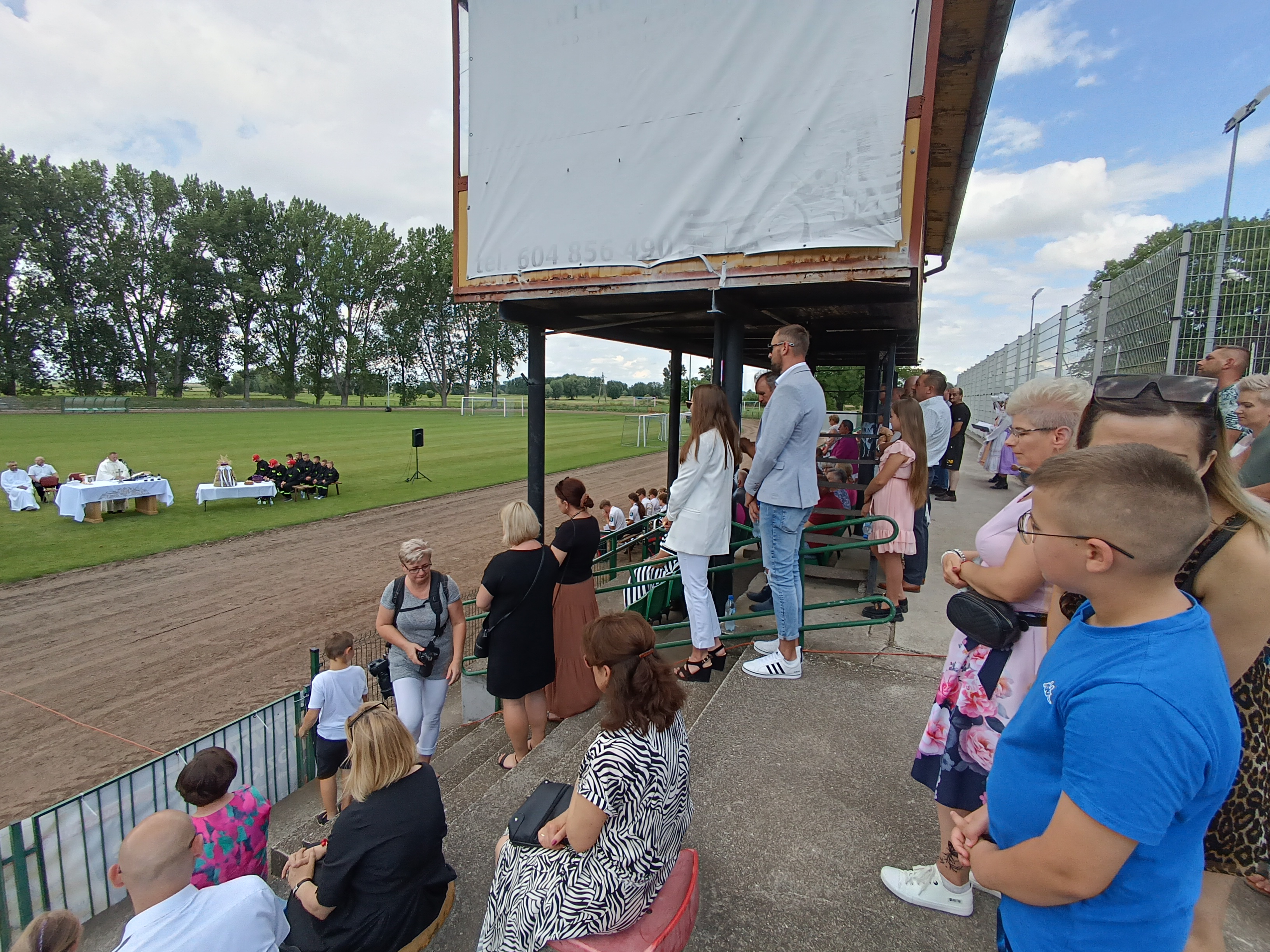 Ze stadionu korowód dożynkowy udał się pod Dom Strażaka, gdzie w obecności zaproszonych gości nastąpił Tradycyjny Obrzęd Dożynkowy w wykonaniu Biskupiańskiego Zespołu Folklorystycznego z Domachowa i Okolic.
