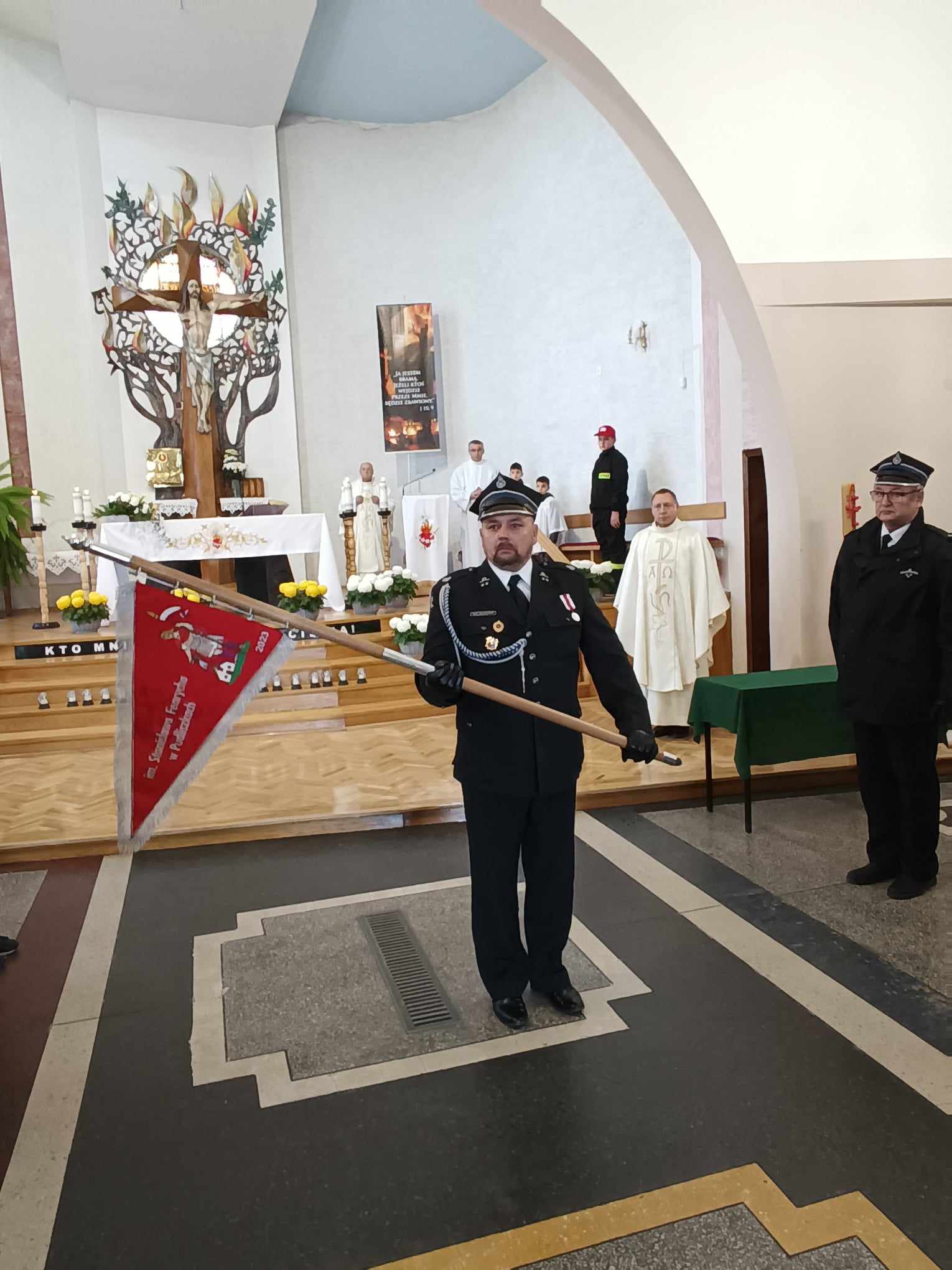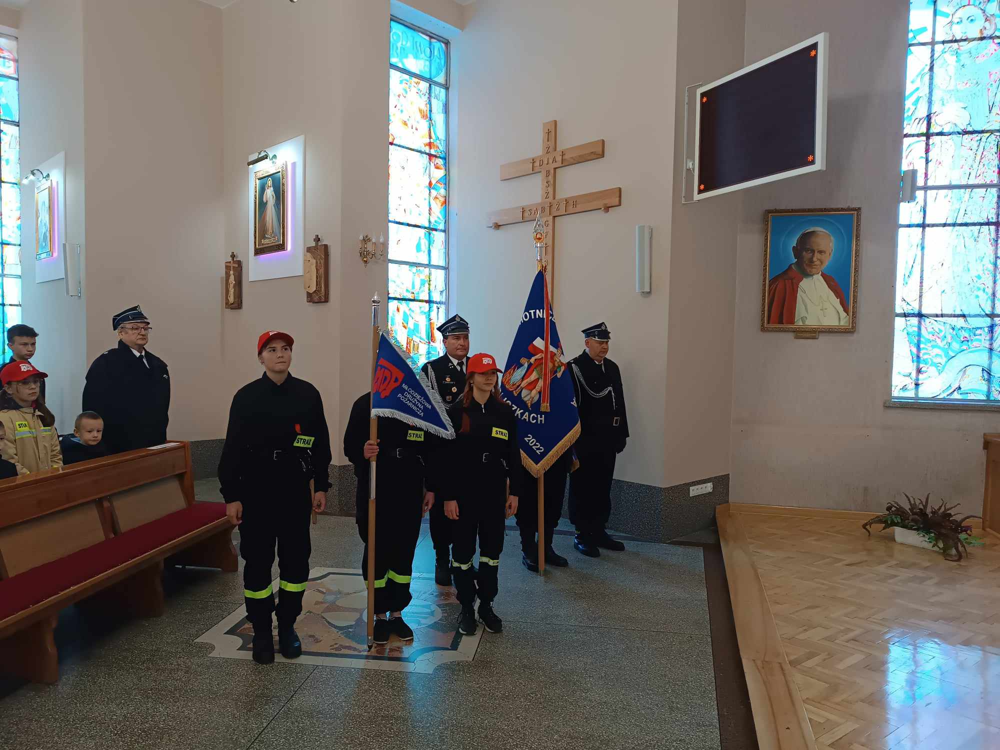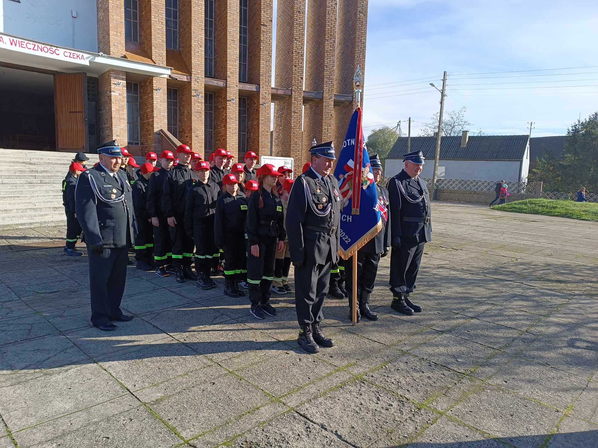 Poświęcenia i przekazanie proporca Młodzieżowej Drużynie Pożarniczej im. Stanisława Fenrycha w Pudliszkach.