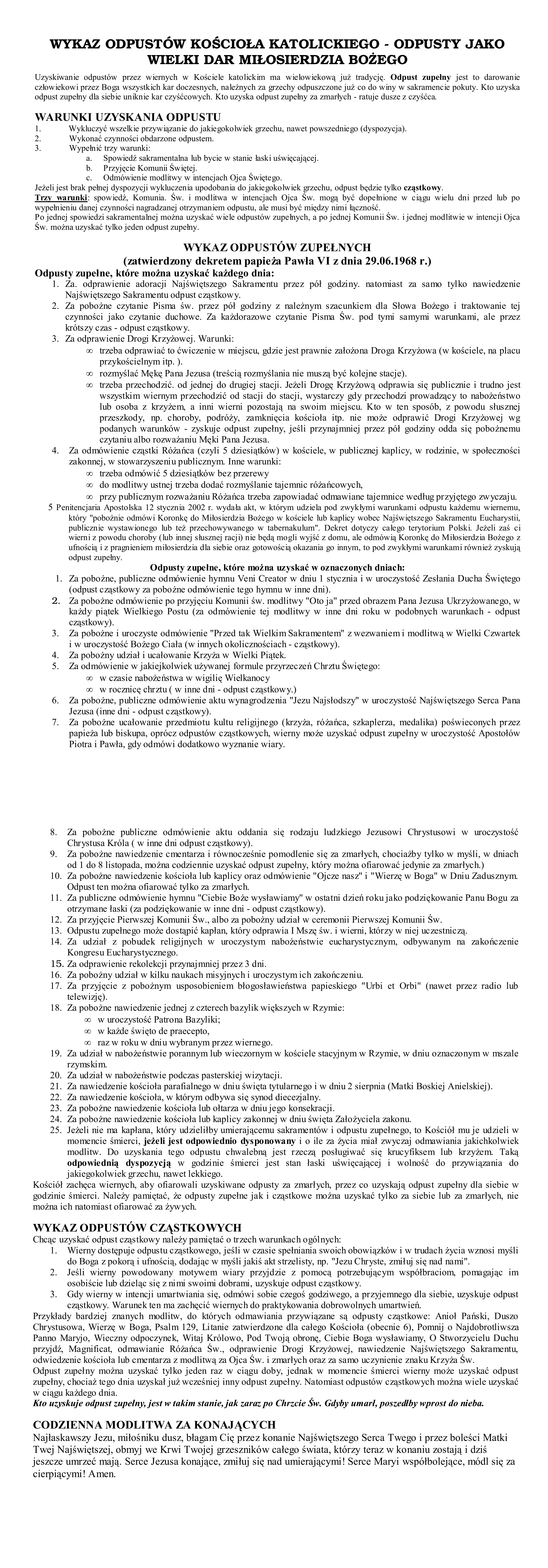 Wykaz odpustów Kościoła Katolickiego