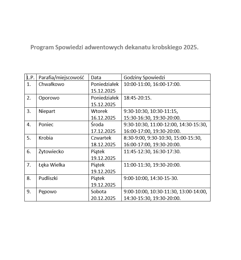 Program Spowiedzi adwentowych dekanatu krobskiego 2025.