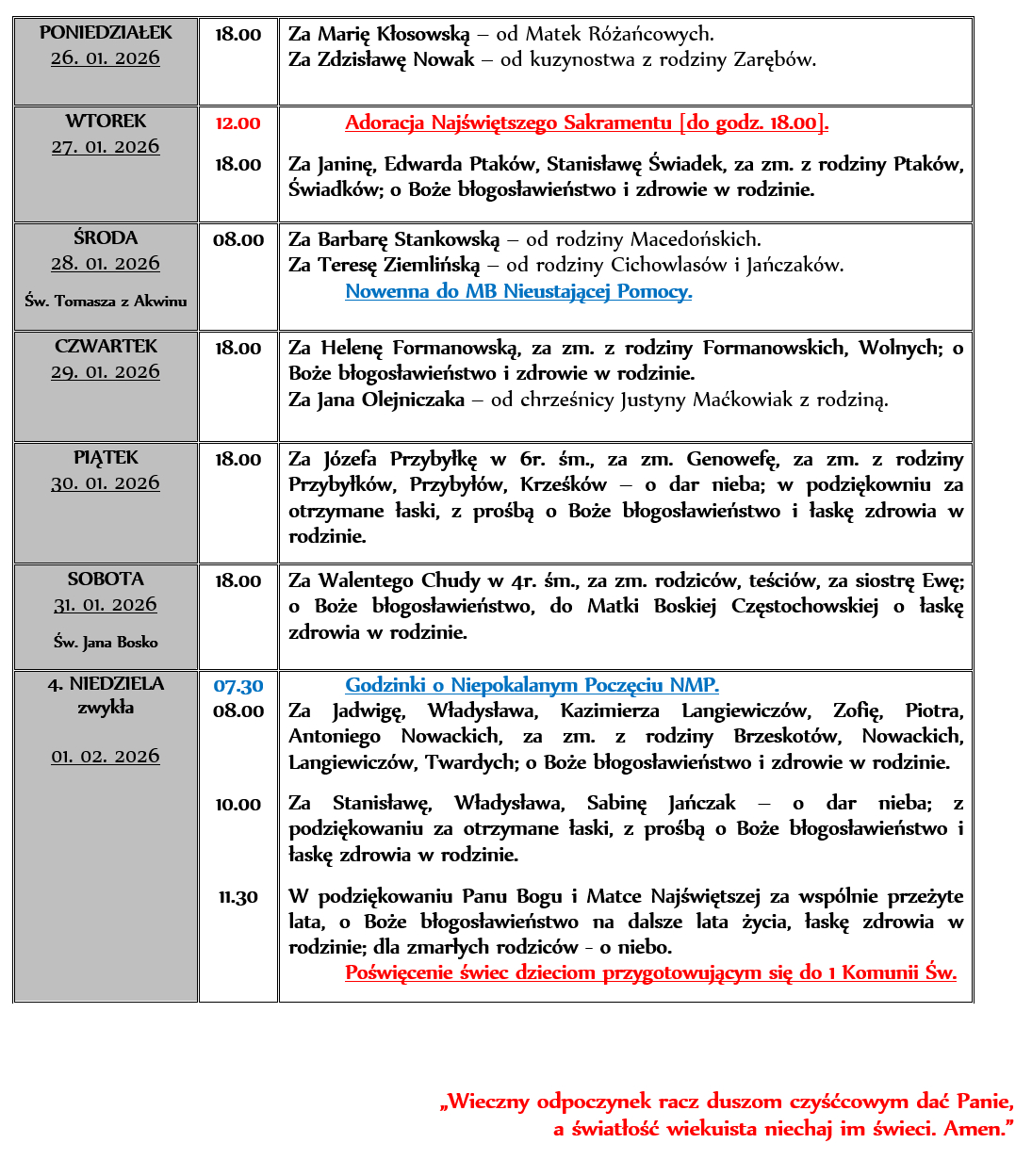 INTENCJE MSZALNE 26. 01. – 01. 02. 2026r.